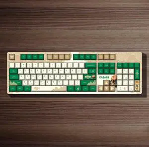 i-rocks K73M Mechanical Gaming Keyboard with Media Control Knob, 107 Keys, PBT Keycaps, Multimedia Hotkeys, Detachable USB-C Cable (Cherry MX Brown Switches, Mint Peach)