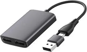 GAOSHA USB TypeC Double Output Adapter 4k 3840x2160@30Hz for Multiple Monitors Expand Screen
