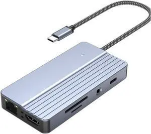 Portable Multiports USB C Hubs 11 in 1 with HDTV and DP 4K Output RJ45 Port Fast Data Transfer 3.5mm Music Ethernet Port