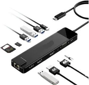 Portable Multiports USB C Hubs 11 in 1 with HDTV and DP 4K Output RJ45 Port Fast Data Transfer 3.5mm Music Ethernet Port