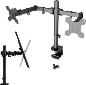 Office Desk Accessories Dual Monitor Desk Stand, Free Standing Monitor Stand for 2 Screens up to 17.6lbs per Arm, Adjustable Dual Monitor Mount Arm with Tilt, Swivel, Rotation Monitor Mount