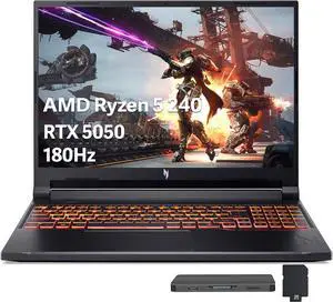 Acer Nitro V 16 AI 16" WUXGA 180Hz Gaming Laptop, AMD Ryzen 5 240, 16GB DDR5, 1.5TB Storage(512GB SSD+1TB Docking Station Set), GeForce RTX 5050, Backlit Keyboard, Numeric Pad, Win 11 Pro, Black