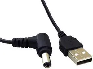 USB 2.0 A Type Male to Angled 90 Degree 5.5 x 2.5mm Plug Barrel Cable U2-254-RI