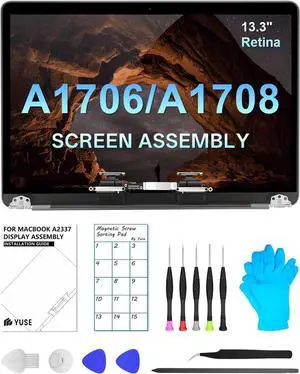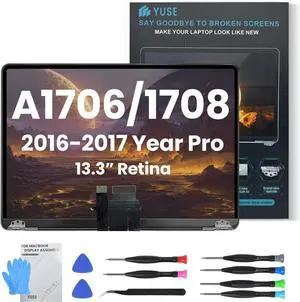 YUSE A1706 A1708 Screen Replacement for MacBook Pro 13inch Late 2016 Mid 2017 Retina 13.3"(EMC 3071 EMC 3163 EMC 2978 EMC 3164) A Full LED LCD Display Assembly (Silver)
