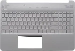 Laptop US Keyboard Compatible for HP 15T-DY100 15T-DY200 15-DY1027OD 15-DY1074NR 15-DY1036NR 15-DY2000 15-DY2073DX 15-DY2046ms 15-DY2XXX Backlit Silver Palmrest Upper Cover