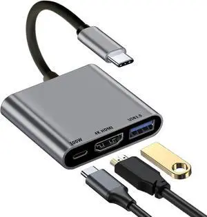 Fubiaofei USB C to HDMI Multiport Adapter 100W Fast Charging, USB-C to USB3.0 Adapter with 4K HDMI, Type C Digital AV Multiport Converter 3-in-1 Hub for iPad Pro MacBook Chromebook