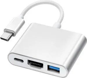 HRIOEKAX USB C to HDMI Adapter for Mac, 3 in 1 USB C Adapter with HDMI Output 4K Fast Charging Port and USB 3.0 Port Compatible with iPhone 15, iPad Air, Chromebook, Dell, HP etc