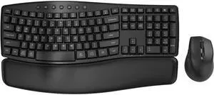 Ergonomic Wireless Keyboard and Mouse Combo, 2.4G Full Size Ergo Wave Key Board with Cushioned Plam Rest, Natural Typing, 3 DPI Adjustable Silent Mouse for Computer/Laptop/Windows/Mac - Sablute