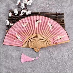 Folding Fan Ladies Folding Fan Retro Style Ruihe Figure Carrying Silk Hanfu Decoration Small Fan Fan (6 Hooks) (1)