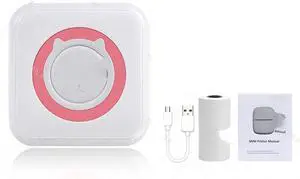 Printer Mini Printer Portable Photo Lable Printing Pocket(LuckPink add 6Color)