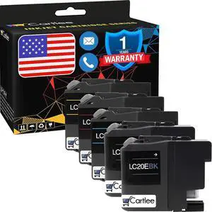 Cartlee Set of 5 Remanufactured Super High Yield Ink LC20E LC-20E Cartridges Replacement for MFC-J5920DW Multifunction Printer (2 Black, 1 Cyan, 1 Magenta, 1 Yellow) LC20EBK LC20EC LC20EM LC20EY XXL
