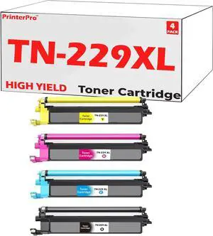 [New CHIP] PrinterPro Compatible Replacement for Brother TN229 XL Toner Cartridges TN-229 for HL-L3220CDW L3280CDW L3295CDW L3300CDW L8245CDW MFC-L3720CDW L3765CDW L3780CDW L8395CDW (1 SET - B/C/M/Y)