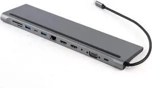 USB C 10 in 1 Adapter with Video+VGA 1000M Ethernet 100W 3xUSB3.0 Memory Cards Slots for Electronics Multipurpose