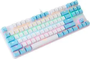 Mechanical Keyboard 87 Keys Blue RGB Backlit Ergonomic Wired for Laptop Desktop PC Quick Response (Wired Black Red)