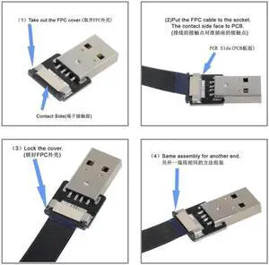 Down Angled USB 2.0 Type-A Male to Type-A Male Data Flat Slim FPC Cable 90 Degree for FPV and Disk and Scanner and Printer 1.5"feet