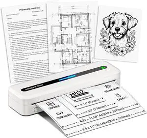 WALFRONT Thermal Printer Portable Printing Machine Inkless Support 8.5x11in US Letter A4 A5 Size Paper for Office Travel Home