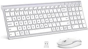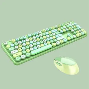 Wireless Keyboard and Mouse Combo, MOWUX Colorful Computer Full Size 2.4G Plug and Play Wireless Typewriter Keyboard and Mouse Set for Windows, Computer, Desktop, PC, Notebook (Pink Colorful)