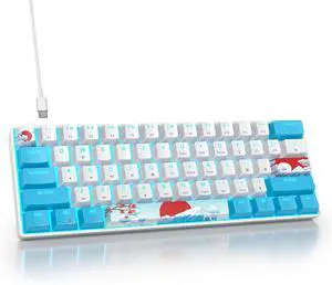 surmen 60% Wired Mechanical Gaming Keyboard, Backlit Ultra-Compact Mini Office Keyboard with Red Switch for PC/Mac Gamer, Typist (61 Blue White)