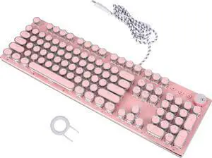 Loolee Retro Punk Round Keycap Mechanical Keyboard for Gamers 104 Key Rainbow Lighting Media Controller White