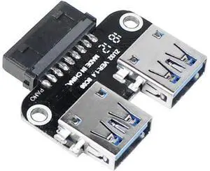 20Pin to Dual USB3.0 Adapter Connverter Desktop Motherboard 19 Pin/20P Header to 2 Ports USB 3.0 A Female Connector Card Reader (Vertical Version)