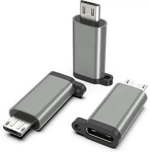 USB-C to Micro USB Adapter 3-Pack USB Type C Female to Micro USB Male Converter USB C to Micro B 2.0 Charge & Data Sync Compatible with Galaxy S7 S6 J7 Note 5 Kindle Ps4 and More -Grey