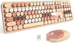 MOFII Wireless Computer Keyboard and Mouse Combo, Typewriter Full Size Keyboard with Number Pad and 2 in 1 USB Connected Mouse for PC Computer Laptop Desktop Windows (Milk Tea)