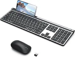 CHESONA Wireless Keyboard and Mouse Combo, Wireless Rechargeable Full Size Multi-Device (Wireless 5.0+3.0+2.4G) Keyboard Mouse Combo for Mac OS/iOS/Windows/Android, Silver Black