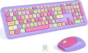 KNOWSQT Wireless Keyboard and Mouse Combo, Pale Purple Full-Sized 2.4G Silent Keycap Colorful Keyboards, USB Dongle Plug Play, Laptop, Windows, PC, Mac, Desktop