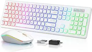 Wireless Keyboard and Mouse Combo - RGB Backlit, Rechargeable & Light Up Letters, Full-Size, Ergonomic Tilt Angle, Sleep Mode, 2.4GHz Quiet Mouse for Mac, Windows, Laptop, PC, Trueque (White)