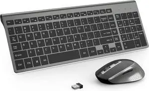 J JOYACCESS Wireless Keyboard with Mouse, 2.4G Thin Wireless Keyboard and Mouse Combo,Ergonomic, Full Size, Compact,Slim for PC, Mac,iMac,Desktop, Computer, Laptop, Windows,Smart TV-Black and Grey