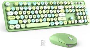 Youker Wireless Keyboard and Mouse Combo, 2.4GHz USB Wireless Connection Retro Keyboard with Numeric Keypad and Optical Mice Set Colorful Keyboard and Mice for PC/Laptop/Mac/Windows XP/7/8/10/11