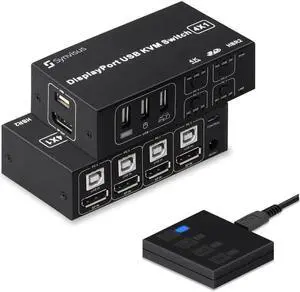 4 Port DisplayPort KVM Switch 3D UHD 4K@60Hz 4 In 1 Out USB and DP KVM Switcher For 4 PCs Share Keyboard Mouse Monitor and USB 2.0 Devices, With 4 USB Cables
