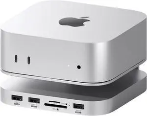 GEWOKLIY Mac mini M4 Dock, Aluminum Stand and Hub for Mac mini M4 and M4 Pro 2024 with M.2 NVMe SSD Enclosure, 2X USB-A 10Gbps, SD/TF Card Readers, USB 2.0 Data (MC60)