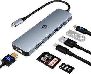 AnHome USB C Hub HDMI Adapter SD Card Reader 7-in-1 USB-C Multiport USB 3.0, Type C 87W PD Charging, USBC Adaptator Dongle Dock Converter for Apple MacBook Pro Air, USB-C Laptop Computer Accessories