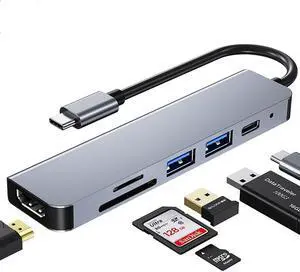 USB C Hub 6 in 1 Multiport Adapter 4K HDMI, 100W Power Delivery, Dual Card Reader, USB 3.0 & 2.0 Compatible for USB C Laptops and Other Type C Devices