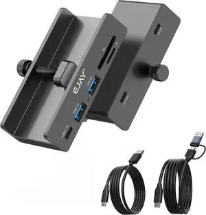 EJAY 5Ports USB3.0 HUB Alu Splitter Desktop Docking with Card Reader for Desk/Monitor Clipping with Extra Power Supply Port,59inches Data & 39inches Power Cable-5Gbps (BJ-2A1CTS-SV)