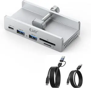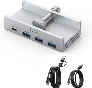 EJAY 10Gbps USB C Hub 4Ports Aluminum USB 3.2 Docking Hub Clamp Design for Desk/Computor with Extra Power Supply Port and 47inches Long Data Cable&39inches Power Cable (Sliver)