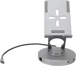 Rotating Type C Dock Stand for Tablets PD100WCharging Gigabit Networking Port 3.5mm Slip Proof Silicone PadCooling Design Foldable Rotating Stand for Tablets