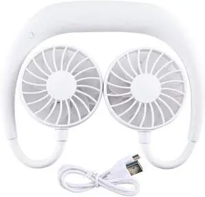 Handheld Fan USB Portable Fan Handsfree Neck Fan Hanging Sports Fan USB Rechargeable 3 Speed (Fan)(Color: Upgraded White)