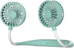 Portable Fan Hanging Neck Fan USB Rechargeable Neckband Sport Fan Portable Personal Wearable Neckband (Fan)(Color: Green)