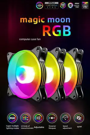 Weastlinks 120mm Cooling Fan RGB Adjustable Speed Adjust LED 12cm Double Halo Pc Computer Cooler ARGB Case Fan PRO Aura Sync