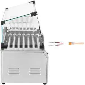 Hot Dog Roller 7 Rollers 18 Hot Dogs Capacity 1050W Stainless Sausage Grill Cooker Machine with Dual Temp Control Glass Hood Acrylic Cover Bun Warmer Shelf Removable Oil Drip Tray, ETL Certified