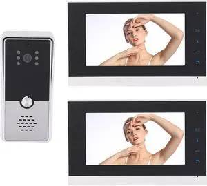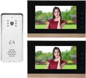 Video Intercom Doorbell System, 120º Wide Angle Video Doorbell Camera with 2 Monitor & 7 Inch Screen Wired Video Door Entry System for Villas Homes Offices (US Plug)