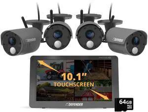 PHOENIXHD Non-WiFi, Plug-in Power Security System with 4 Cameras & 10.1 HD Monitor with 64GB SD