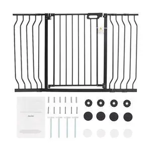 Baby Gate, 29.5"-51" Extra Wide, 30" High, Dog Gate for Stairs Doorways and House, Easy Step Walk Thru Auto Close Child Gate Pet Security Gate with Pressure Mount Kit and Wall Mount Kit, Black