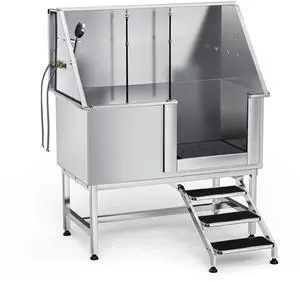 Stainless Steel Dog Washing Station, 50 inch Pet Grooming Tub w/ Ramp, Faucet & Showerhead & Leash Dog Bathtub for Large & Medium & Small Pets (Right Door)