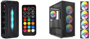 SAMA 20-Port Case Fan Hub with Remote, SATA Power 10-Port 4-Pin PWM Fan Speed and 10-Port 3-Pin ARGB Lighting Controller and SAMA S40 Black ATX Mid Tower Case - High Airflow, 4x 120mm ARGB PWM Fans, Tempered Glass, Mesh Front, Type-C, Supports ATX/M-ATX/ITX & 4090 GPUs - Computer Case