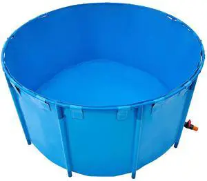 VEOVR Outdoor Storage Box, 150 Gallon Waterproof PE Tarpaulin Deck Box with Galvanized Frame, All-Weather Protection & Portable, for Camping, Garden, Poolside, and Yard, Brown & Blue