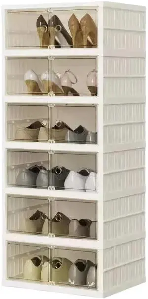 Toytexx Inc Premium 6-Layer Foldable Shoe Organizer Cabinet with Clear PET Doors, Space-Saving Stackable Shoe Rack for Sneakers, Heels & Boots Easy Access Shoe Storage Tower