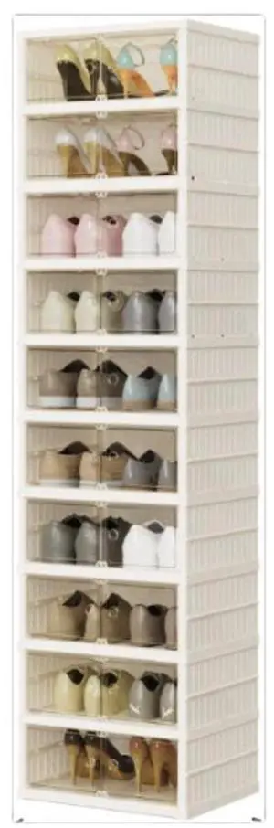 Toytexx Inc 10-Tier Foldable Shoe Cabinet, 175cm Stackable Shoe Storage Tower with Doors, Space-Saving Shoe Rack Organizer for Closet, Entryway & Bedroom